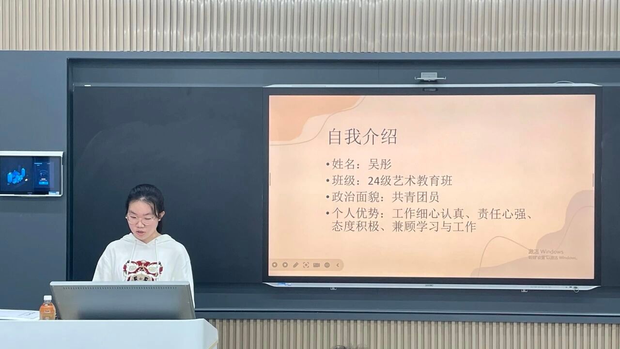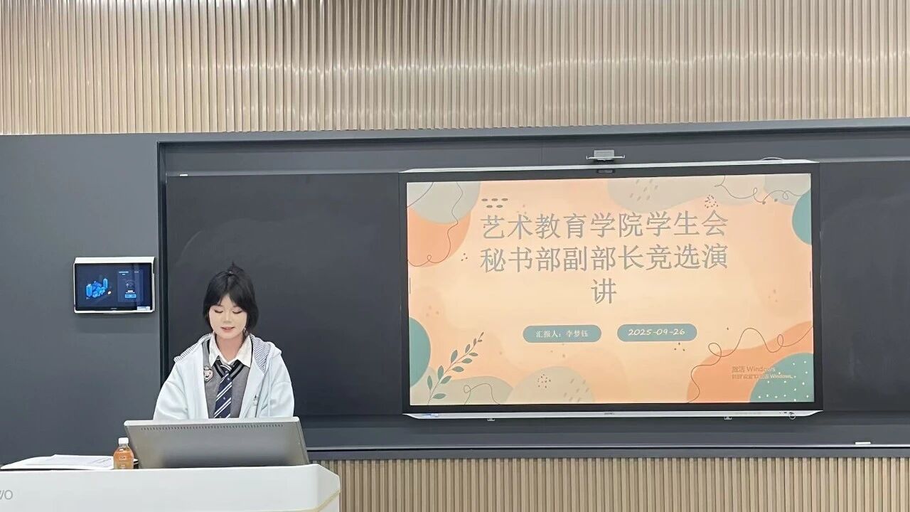 副部长竞选大会伊始,艺术教育学院学生会主席陈凌凌介绍了本次副部长竞选的流程与参与部门。随后,各部门竞选同学依次上台,围绕自身在学生组织中的工作经历、对副部长职责的理解以及未来工作规划等方面展开演讲,展现出艺教学子积极进取、勇于担当的精神风貌。