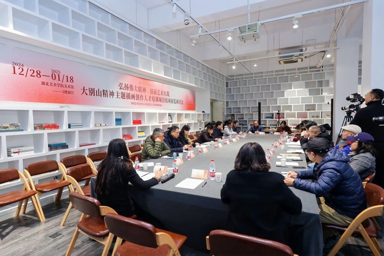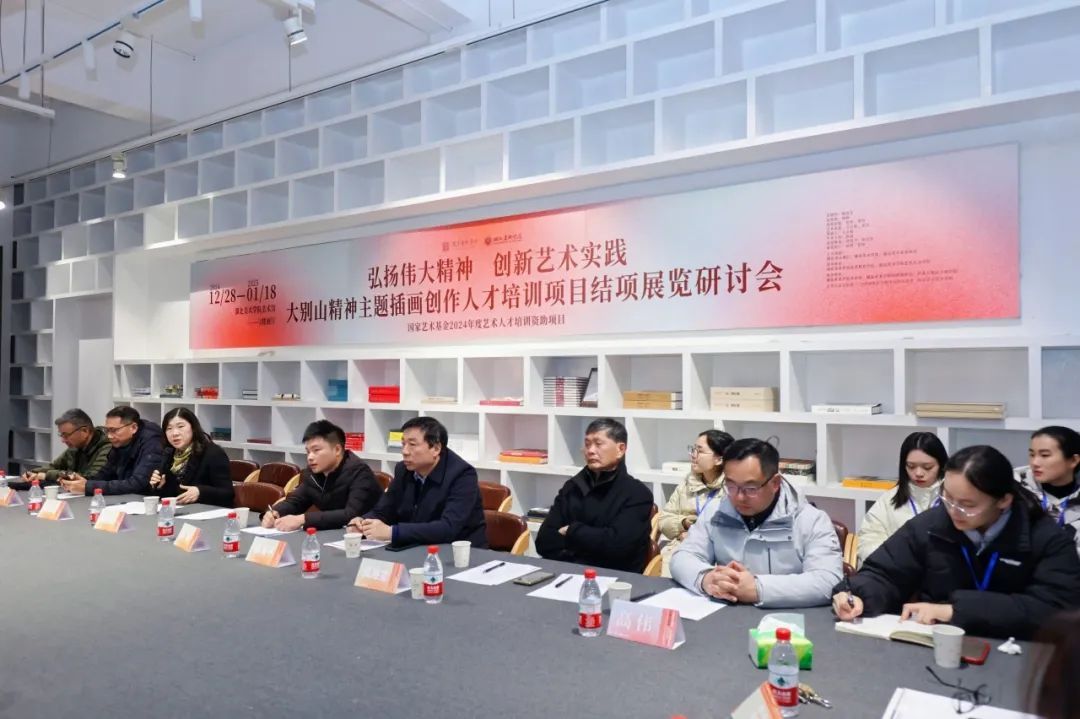 2024年12月28日上午10:30,由彩票公益金资助——中国福利彩票和中国体育彩票、国家艺术基金资助的国家艺术基金2024年度艺术人才培训资助项目《“大别山精神”主题插画创作人才培训》项目研讨会在湖北美术学院昙华林校区美术馆一楼会议室召开。
