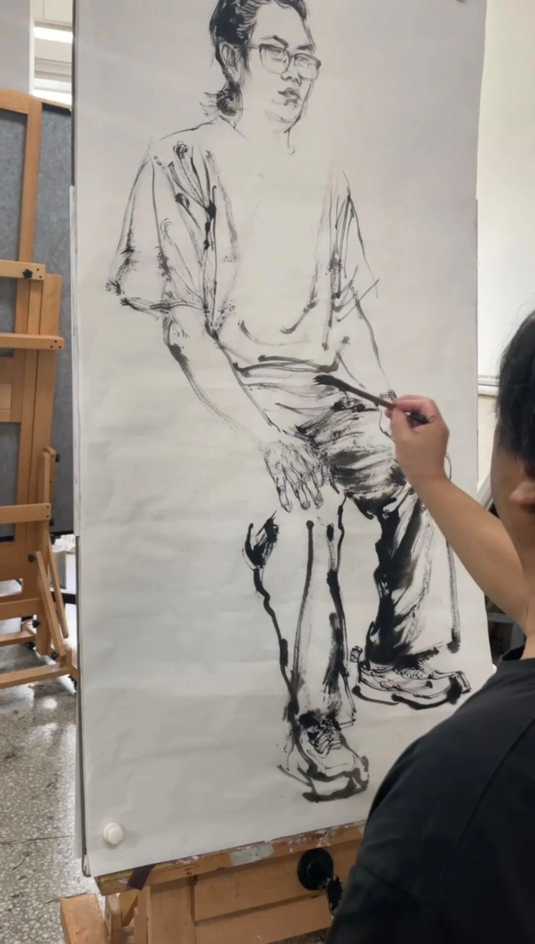 在教学过程中,钟教授始终强调基础训练与个性表达并重。他鼓励学生尊重对象、深入观察,在掌握技法的基础上,逐步探索水墨语言中的个人表达。这种兼顾规范与创新的教学导向,激发了学生对水墨人物画更深入的思考与尝试。