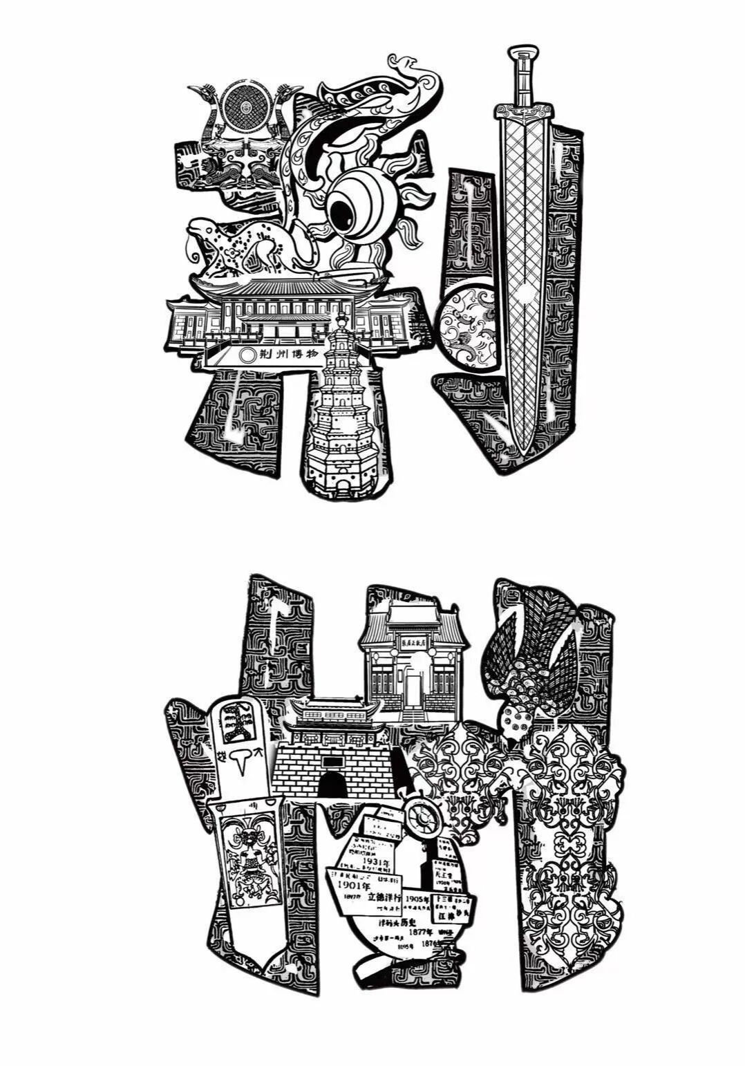 以湖北省 13 个地级市及特色县市地名为载体开展汉字设计,将字形融入地域历史、自然或民俗元素等,兼具创意性、装饰性与独特识别性。