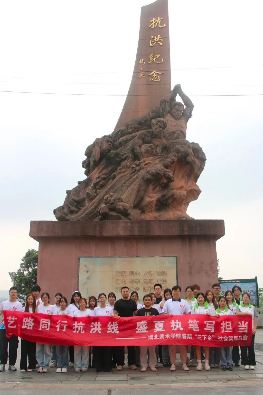 7月12日,艺术教育学院“安澜先锋”志愿服务队、艺术人文学院“长江赤浪”志愿服务队“三下乡”暑期社会实践队伍溯流而上,抵达荆楚大地与潇湘交汇的抗洪精神重要见证地——湖南省常德市,瞻仰抗洪纪念碑,开展“堤岸”行走课堂。