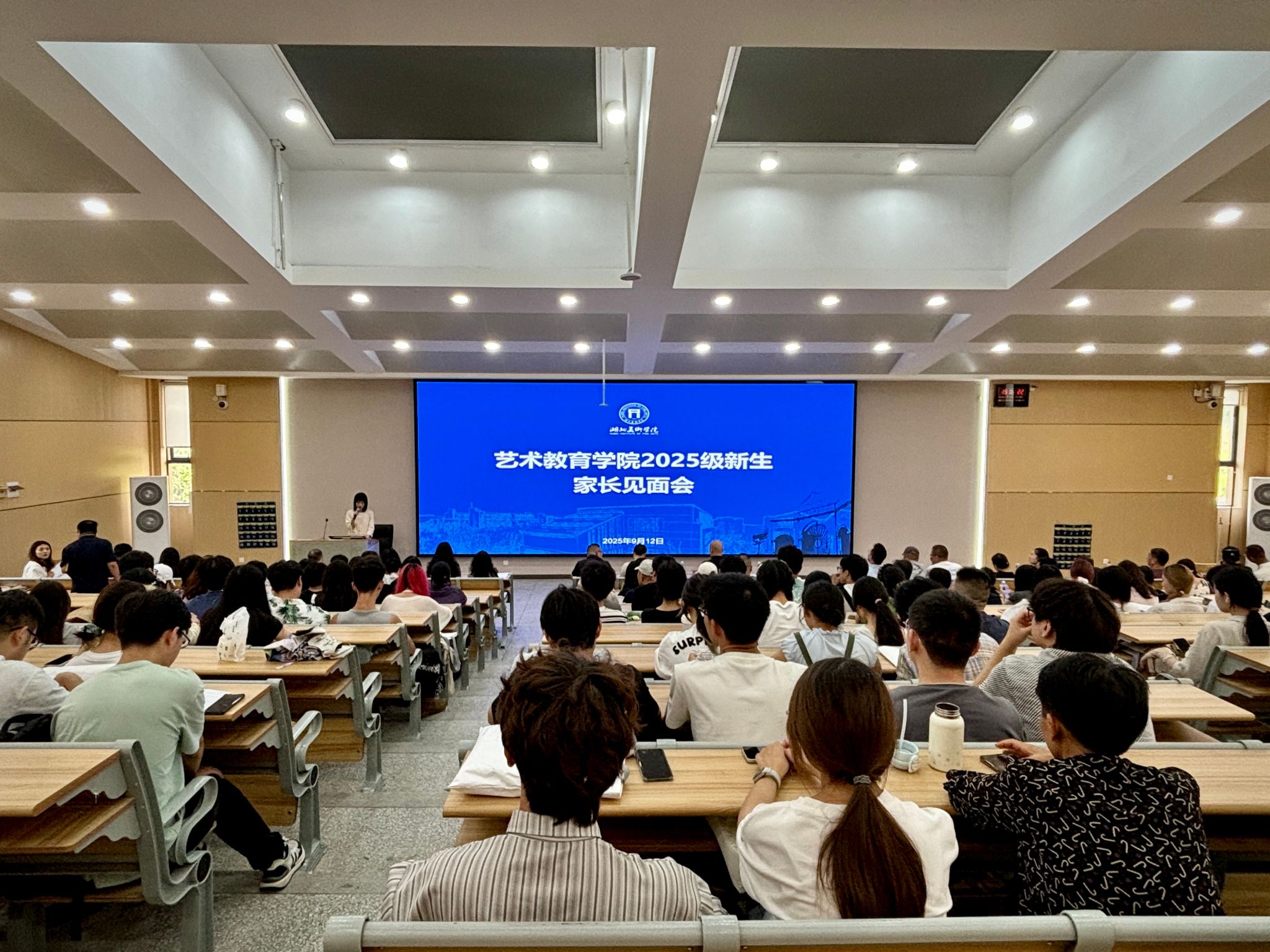 为搭建家校沟通桥梁,凝聚育人合力,9月12日下午,湖北美术学院艺术教育学院2025级新生及家长见面会在A12-215教室隆重举行。学院党政领导、研究生导师、美术教育系教师、一年级班主任及办公室教师与2025级本硕新生和家长代表齐聚一堂,共同开启家校协同育人的新篇章。会议由2025级本科新生辅导员代居念主持。