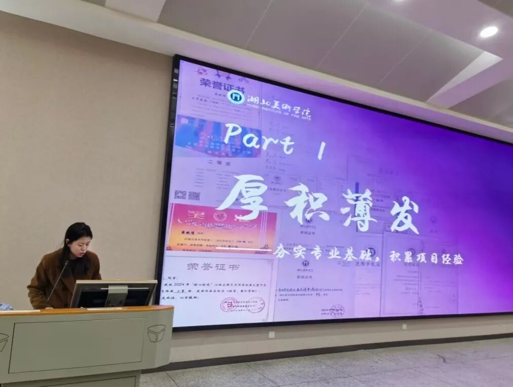 蒋航倩从参加各类专业比赛与实践活动的角度出发,分享了自己在竞赛准备过程中的真实体会。她结合自身参赛经历,重点讲述了如何选择适合自己的比赛方向、如何在备赛过程中提升专业能力与综合素养,并鼓励同学们勇于尝试、多参与实践,在一次次“走上赛场”的过程中发现潜力、积累经验。