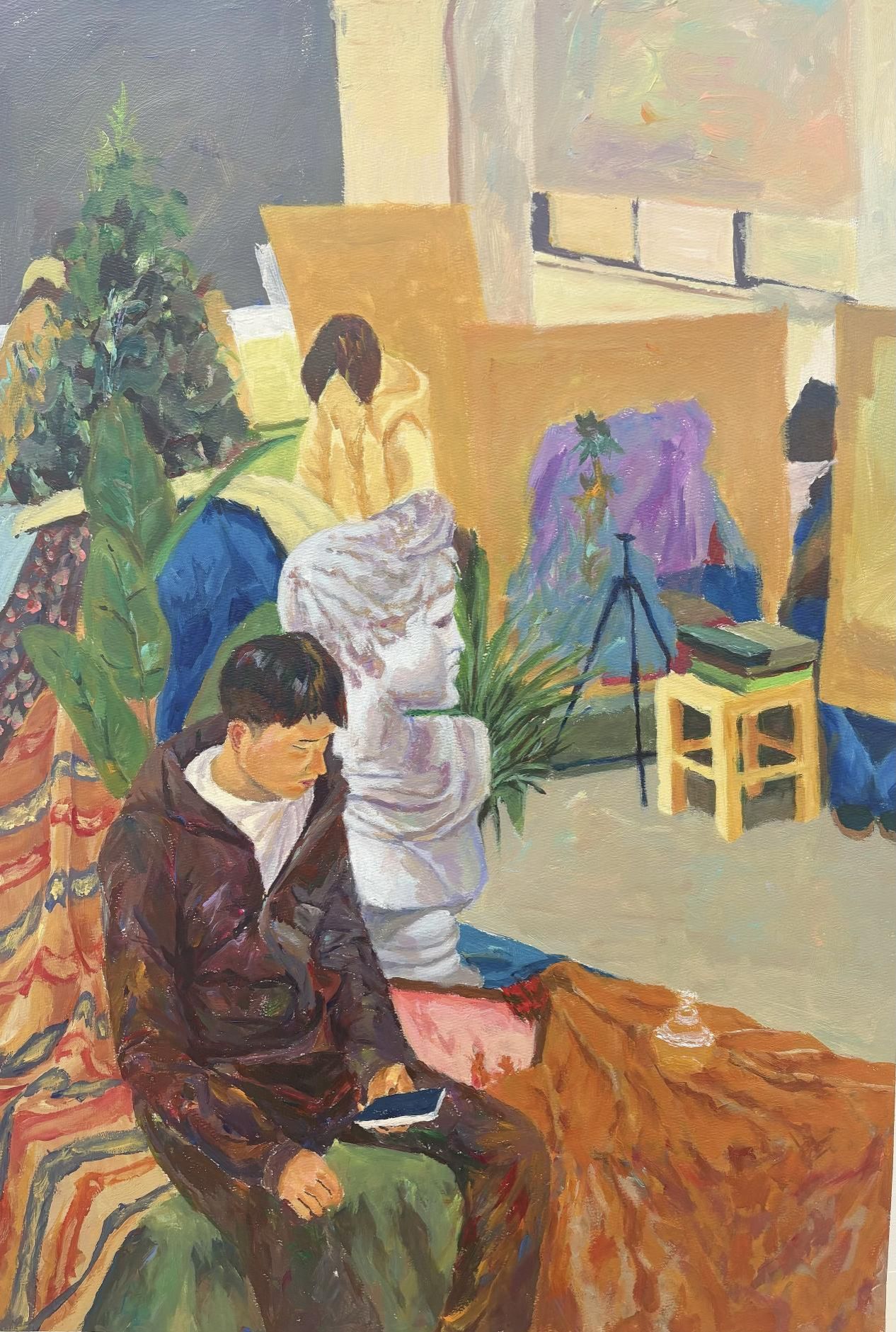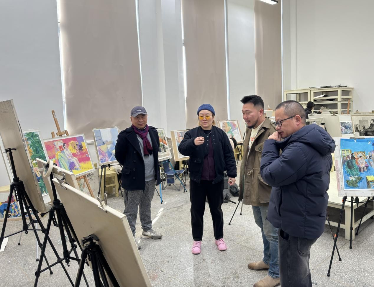 绘画基础部主任杜鹏、色彩教研室主任邱卿云与任课教师李蕾展开交流