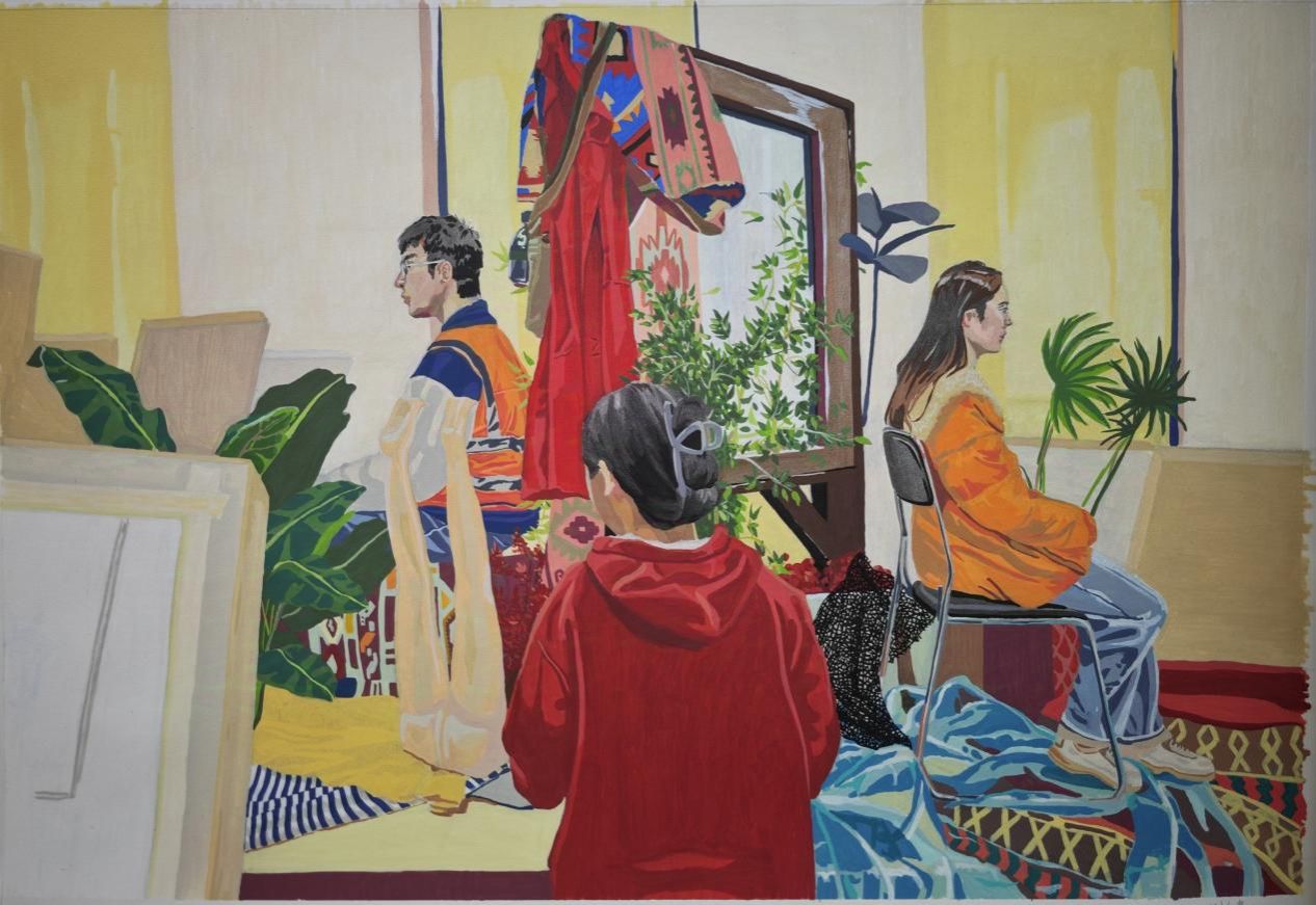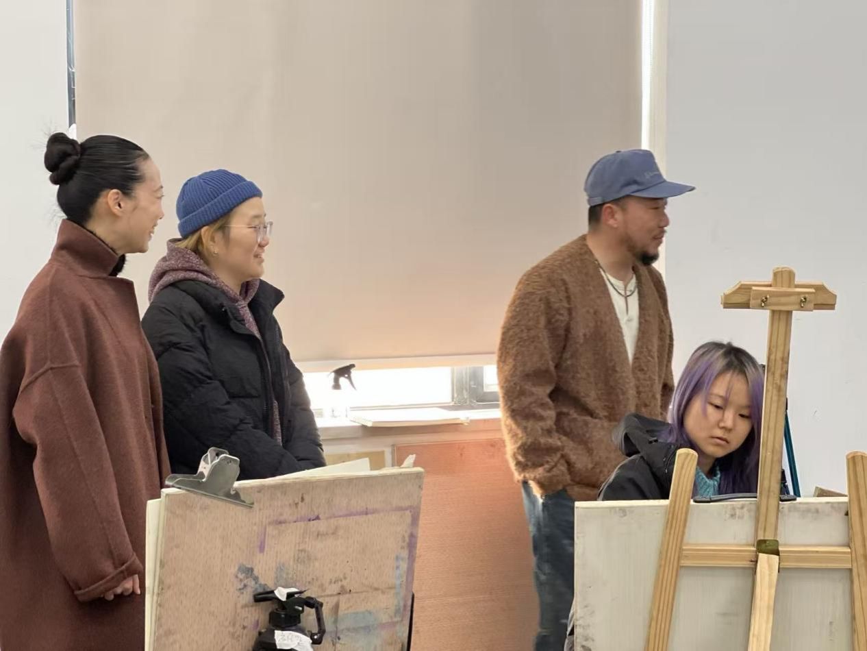 绘画基础部主任杜鹏、色彩教研室主任邱卿云、图式语言教研室主任朱晓盼与任课教师常莞清展开交流