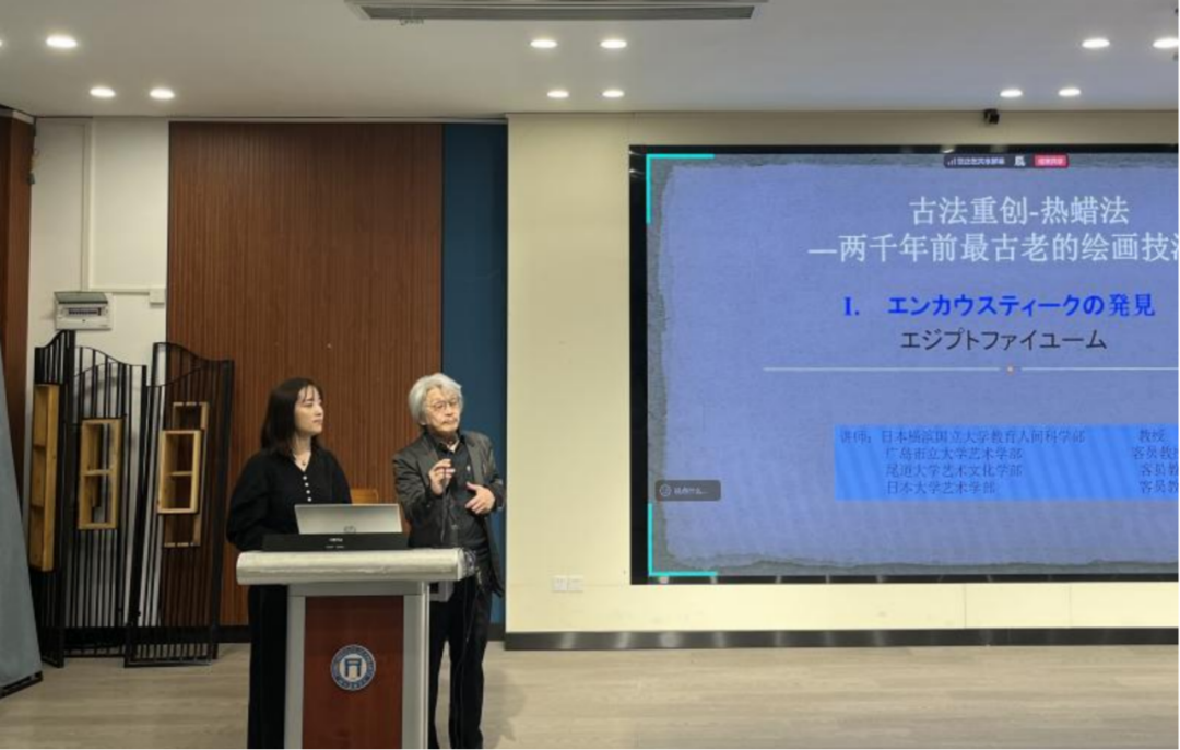 艺术无国界,文化有共鸣。为促进中日学术交流与创作实践的深度融合,2025年11月6日,艺术教育学院邀请横滨国立大学大学院教育人间科学部赤木范陆教授在藏龙岛校区A12栋105教室举办了国际艺术交流活动,为全校师生带来了一场题为“最古老的肖像画技法——热蜡法”的专题讲座。讲座由艺术教育学院副院长周颢主持,全体师生共计百余名到场学习。