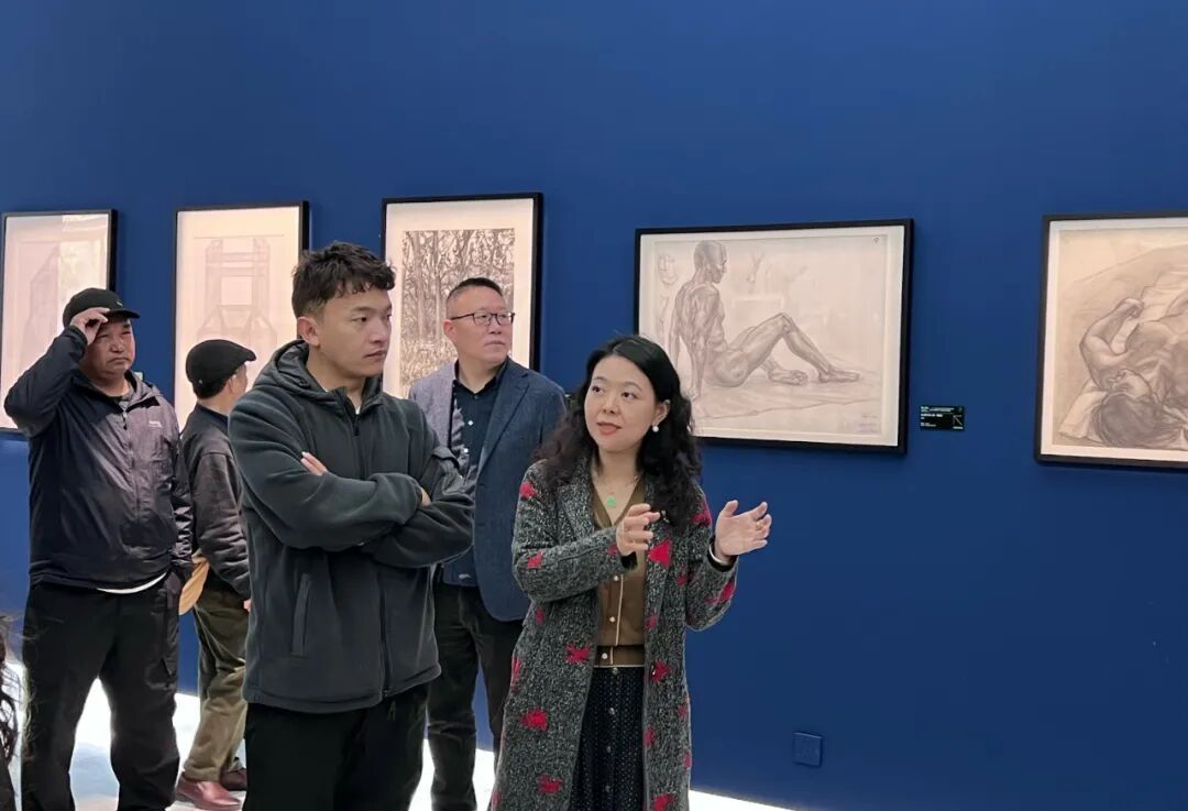 在学院教师的引导下,来访嘉宾首先参观了艺术教育学院展厅,集体观摩“跨越与重构——‘8+N’国际高等美术院校基础教学论坛暨2025国际大学生素描作品邀请展”。展览作品充分呈现了当代艺术院校在基础教学领域的探索成果,也为西藏地区美术教师提供了新的教学启发与美育思考。