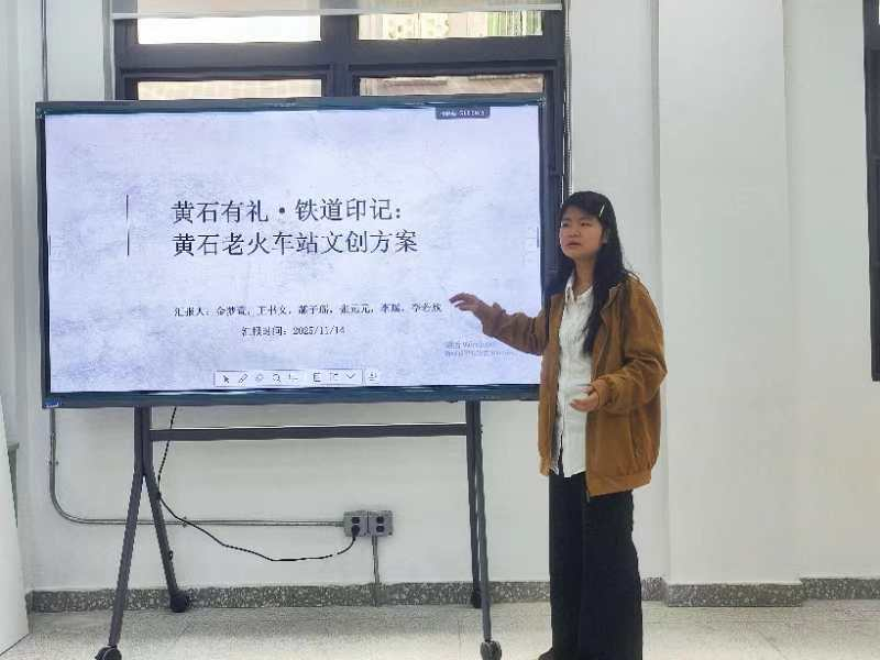 经过几周对黄石周边地点考察,各小组在汇报环节中,多位小组代表依次展示了丰富的研究成果,内容覆盖:“磁湖夜游”、“黄石有礼”、环境艺术设计改造案例、导视设计相关项目案例分析、黄石老火车站文创设计等,同学们从不同角度切入,结合实地调研、文化分析与设计实践,呈现出丰富而深入的研究内容。