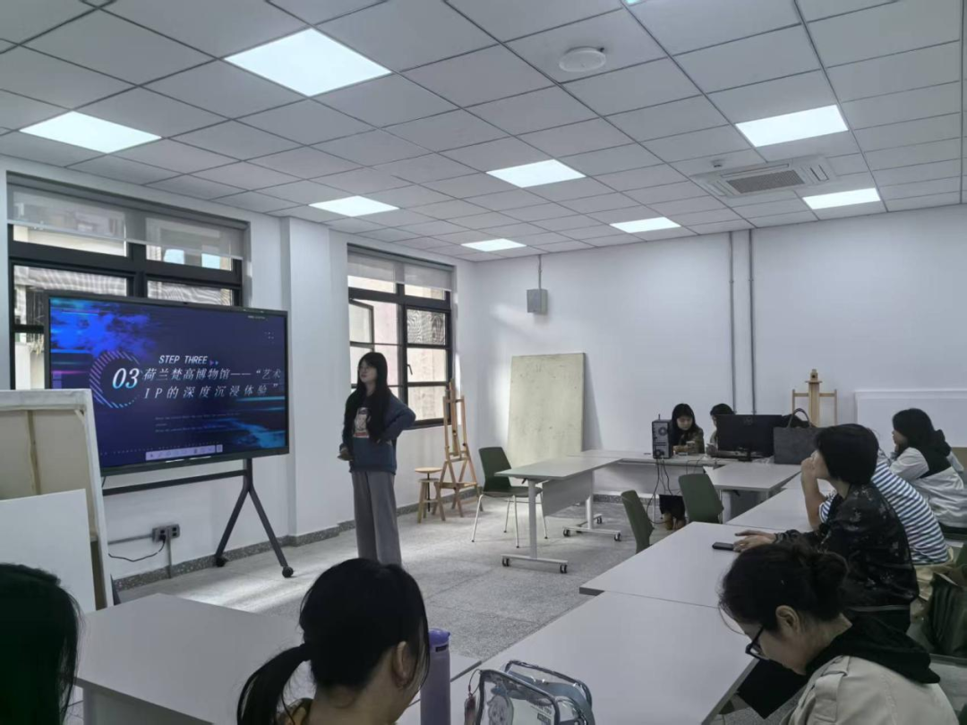 在每个小组汇报结束后,现场进入了热烈的研讨互动环节。金纾老师首先对小组代表的汇报进行了整体点评,她充分肯定了同学们前期的扎实调研与富有创见的表达,随后,同学们围绕汇报内容展开了积极的跨组交流,大家就“如何平衡夜游项目的科技感与人文温度”“文创产品如何实现从纪念品到日常用品的转化”“历史街区更新中如何保留原真性”等关键问题展开了多轮讨论。金纾老师在互动中不断引导同学们跳出单一项目视角,思考设计作为“软性介入”如何系统性地回应城市发展、文化传承与公众需求。研讨不仅深化了同学们对各自课题的理解,更在思想碰撞中激发了新的灵感,为后续研究的深化与迭代提供了宝贵的方向。