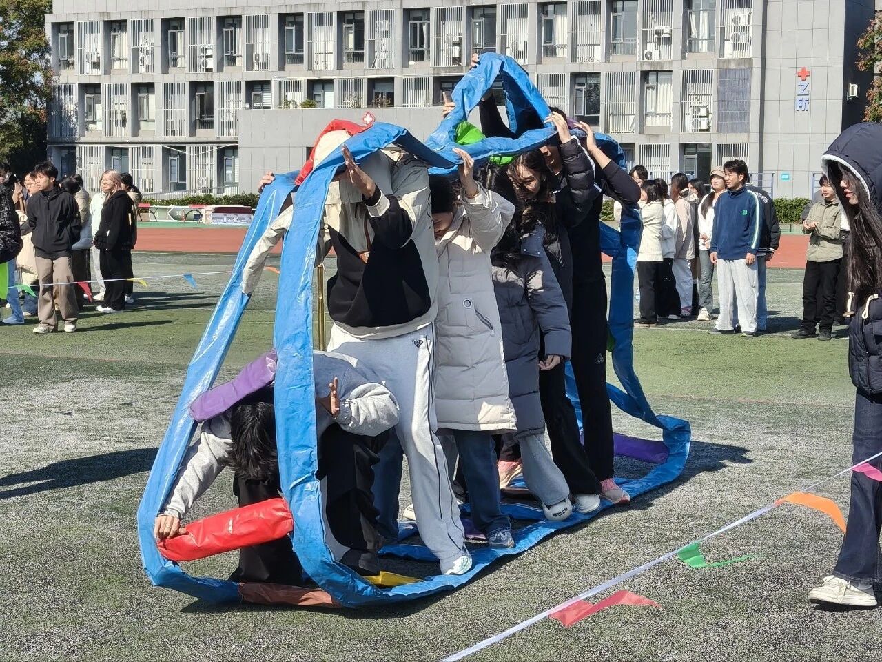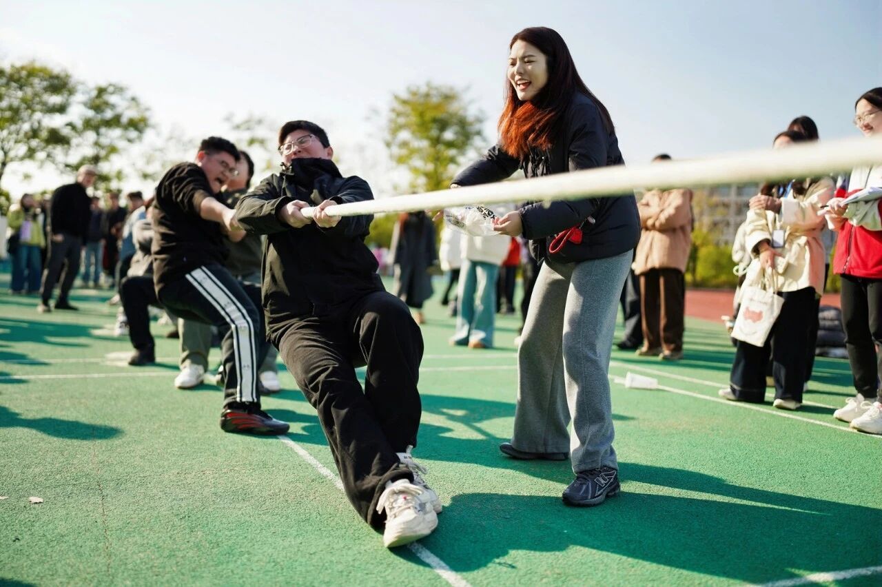 运动会迎来了俄罗斯留学生朋友。他们驻足观赛,热情喝彩,并与志愿者亲切合影。体育跨越国界,友谊为赛场增添了另一抹温暖的色彩。