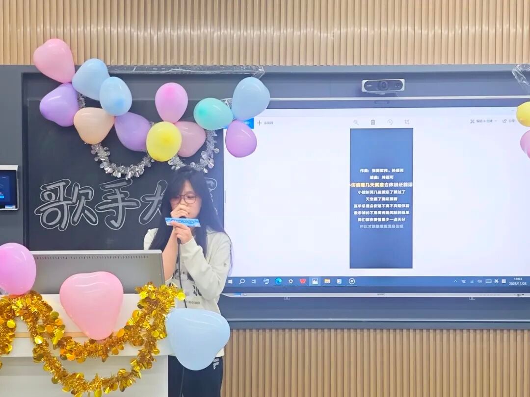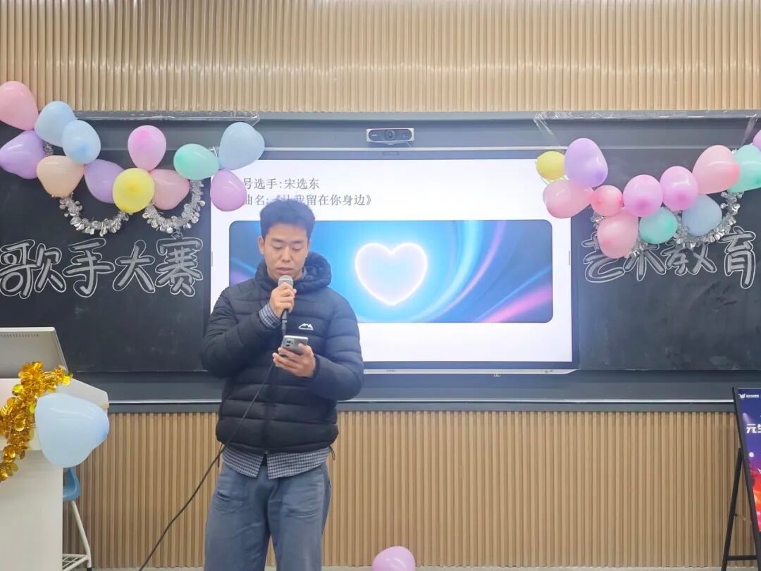11月25日下午17:30,“音”为有你,唱响“心”声艺术教育学院歌手大赛暨心理健康教育活动在学院A13-109智慧教室盛大举行。秉承节俭办赛的宗旨,没有华丽的舞台,所有设备均由师生亲手搭建;没有遥远的距离,镜头背后是艺术教育学院学生。当第一个音符响起,这个平凡的冬夜便被这场青春的盛宴点亮,为怀揣音乐梦想的学子们提供了绽放光芒的舞台,吸引众多师生齐聚一堂。我们因音乐相聚,为热爱同歌。