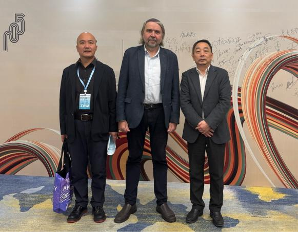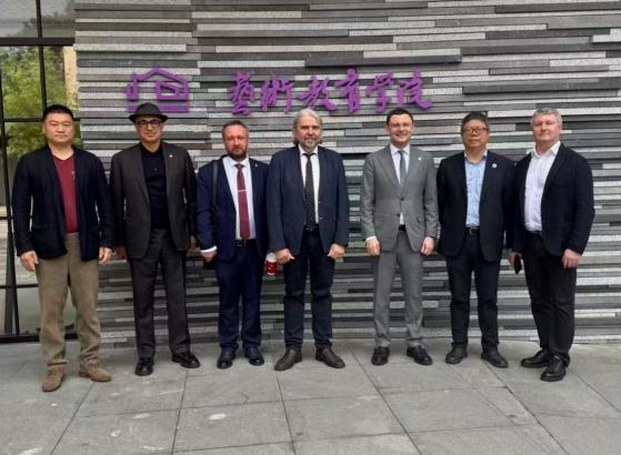 2025年11月8日,俄罗斯艺术科学院主席瓦西里·采列捷利(Vasily Tsereteli)、俄罗斯美术家协会副主席叶夫根尼·罗马什科(Evgeny Viktorovich Romashko)、俄罗斯艺术科学院院士及国际交流处负责人谢尔盖·沙古拉维利(Sergey Shagulashvili)、俄罗斯苏里科夫美术学院副校长伊戈尔·戈尔巴秋克(Igor Vladimirovich Gorbatyuk),以及俄罗斯艺术科学院艺术教育与历史学院院长、俄罗斯艺术学院美术理论和历史研究所所长斯图平·谢尔盖·谢尔盖耶维奇拉赫(Ступин Сергей Сергеевич)一行访问湖北美术学院。湖北美术学院党委常委、副校长程智力,国际交流与合作处处长李锐,艺术教育学院教师郭晓宾与会,就艺术教育合作、文化交流等议题展开深入探讨。