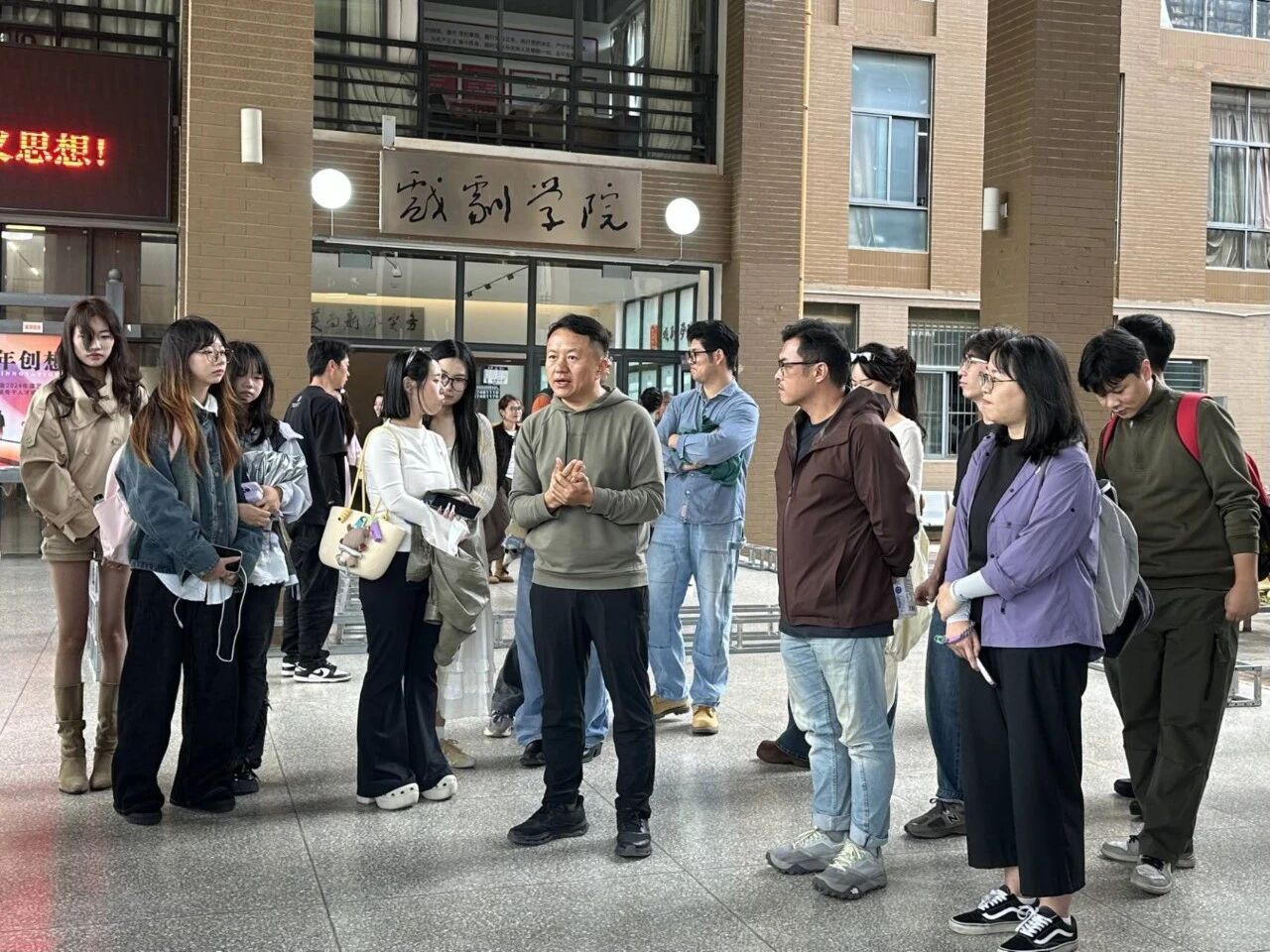 交流之余,云南艺术学院戏剧学院党委副书记王建带领湖北美术学院师生参观戏剧学院。过程中,王建书记详细介绍了戏剧学院的专业设置、舞台艺术创作成果及人才培养特色,通过展示经典剧目排练片段、戏剧道具与服装陈列,让师生们直观感受戏剧艺术与视觉艺术的跨界关联,拓宽了艺术视野。