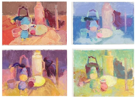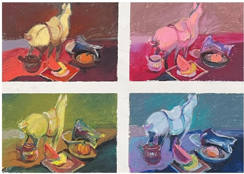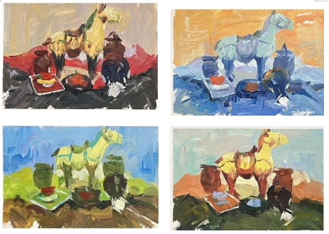 2025年1月3日,艺术教育学院完成了2024级绘画专业一年级《造型语言(色彩再现)》课程,并进行了作业汇展。绘画基础部主任杜鹏,美术教育系主任魏召,色彩教研室主任邱卿云以及绘画专业基础部的任课教师们参与此次活动。汇报展示了老师、同学们辛勤努力的成果,也是他们对课程以“色调”和“色彩关系”的理解和体现。