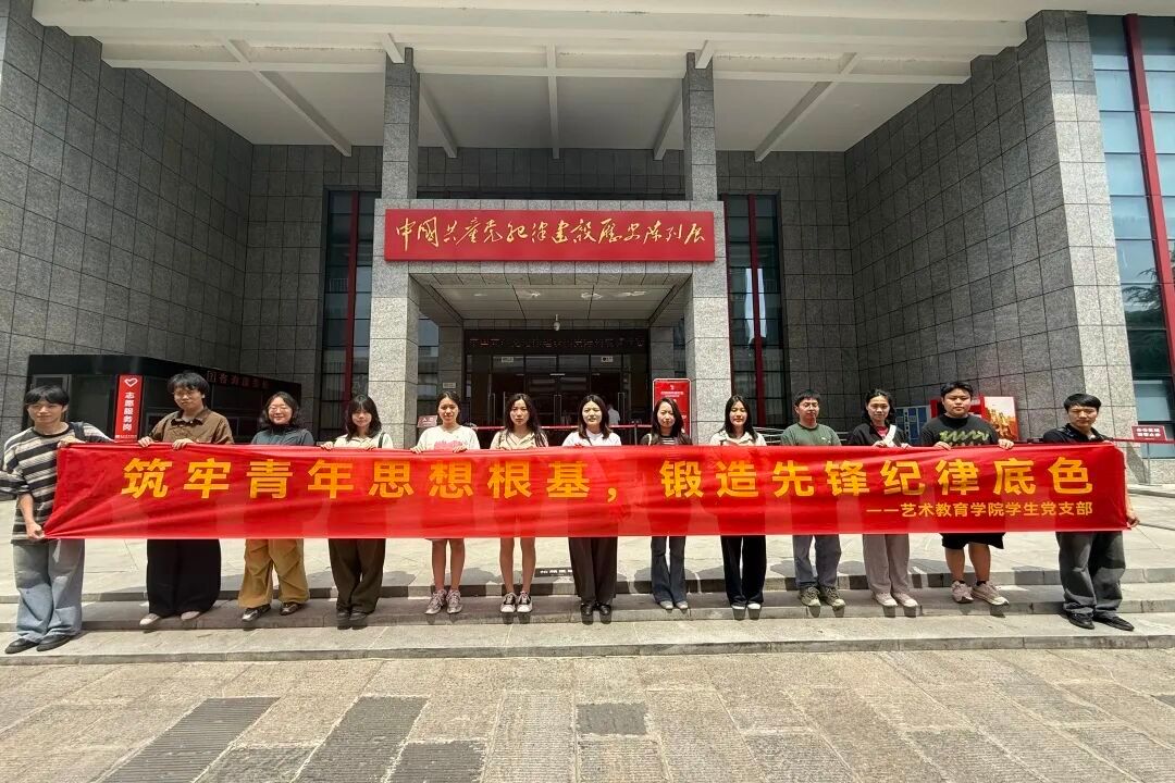 为深入学习贯彻新时代党的纪律建设精神,强化青年党员的纪律意识与思想认同,5月21日,艺术教育学院学生党支部前往中国共产党纪律建设历史陈列馆,开展5月支部主题党日活动,组织支部党员集体参观学习。活动以“筑牢青年思想根基,锻造先锋纪律底色”为主题,通过沉浸式学习,推动党纪教育走深走实。