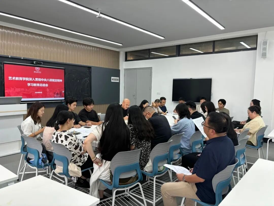 9月12日下午,艺术教育学院在A13-107教室召开深入贯彻中央八项规定精神学习教育总结会。会议深入学习习近平总书记关于作风建设的重要论述,全面总结前一阶段学习教育的举措与成效,研究部署后续工作,推动作风建设常态化长效化。院长王灵毅作总结讲话,教师党支部书记段岩主持会议。