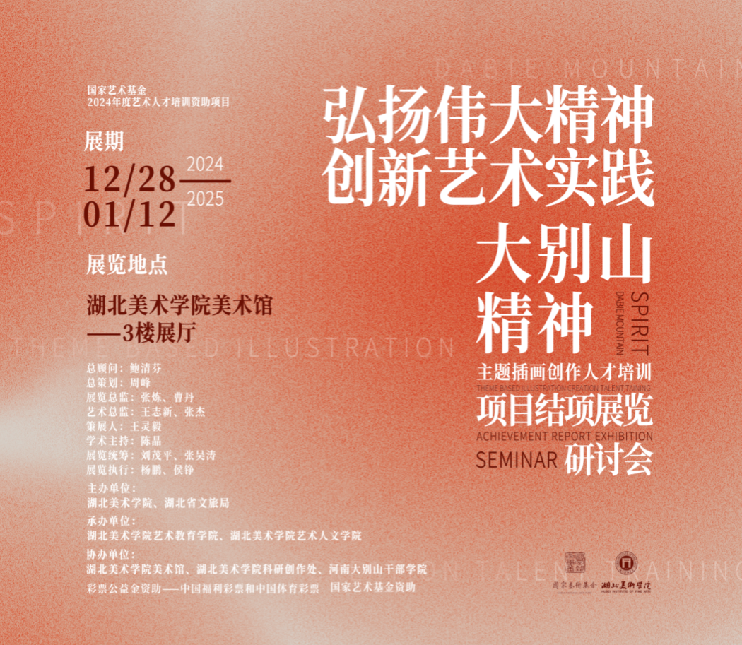 2024年12月28日上午10:30,由彩票公益金资助——中国福利彩票和中国体育彩票、国家艺术基金资助的国家艺术基金2024年度艺术人才培训资助项目《“大别山精神”主题插画创作人才培训》项目研讨会在湖北美术学院昙华林校区美术馆一楼会议室召开。来自艺术创作界、理论界、党史研究等不同领域的专家以及美术馆、兄弟院校的老师们齐聚湖北美术学院。此次研讨会由湖北美术学院艺术人文学院副院长李珊主持,学界各个代表展开热烈讨论,...