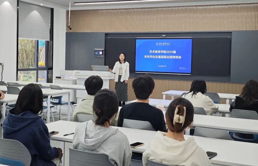 为进一步做好毕业生就业指导工作,鼓励毕业生积极投身基层服务事业,4月10日,艺术教育学院在A13-109智慧教室召开2025届本科生基层就业指导主题班会。本次班会由辅导员代居念主持,学院全体2025届本科毕业生参会。会上,代居念围绕基层就业相关政策进行详细讲解,重点介绍了“大学生志愿服务西部计划”、“三支一扶”计划、基层教师招聘要求以及公务员、事业单位考试的基本政策、流程与报考建议。通过政策解读与实例分享,帮助...