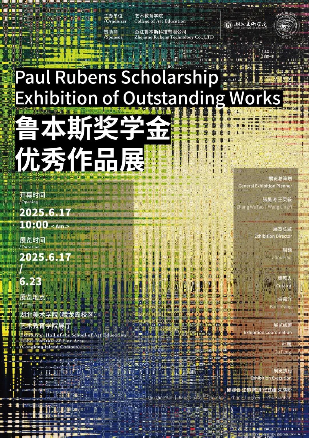 2025年6月17日上午10时由艺术教育学院主办,鲁本斯画材赞助的“鲁本斯奖学金优秀作品展”在艺术教育学院展厅开幕。鲁本斯代表周青,教务处处长肖莉,艺术教育学院院长王灵毅,副院长白露洋以及学院教师和学生代表参加了开幕式。开幕仪式由艺术教育学院绘画基础部主任杜鹏主持。 到场嘉宾、学生代表合影展览开幕式上白露洋副院长致辞中表示“学院秉持‘以赛促学’的教学理念,通过专业竞赛激发学习热情,夯实专业基础,同时以丰...