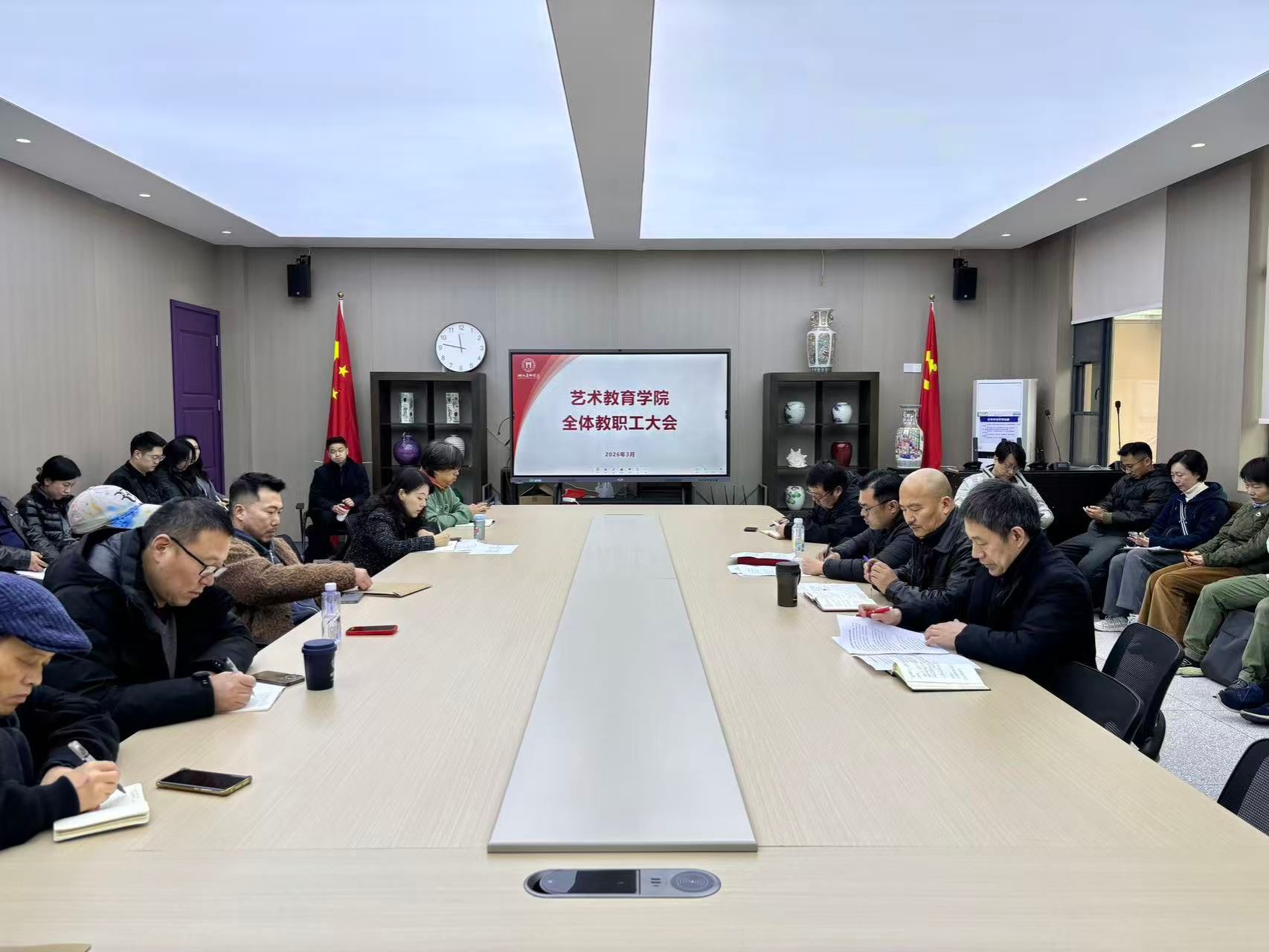 2026年3月17日,艺术教育学院在A13栋333会议室召开全体教职工大会。会议由艺术教育学院副院长周颢主持。副院长周颢围绕研究生教育教学与科研工作作出部署。他强调,要加强教师队伍培养,优化导师队伍结构,夯实学科发展人才基础,研究生工作要严把答辩、毕业论文及创作质量关,强化过程管理与意识形态审查;在肯定科研现有成果的同时,鼓励教师力争新突破,并号召积极参与高水平展览和学术活动,持续提升学院学术影响力。副院长...
